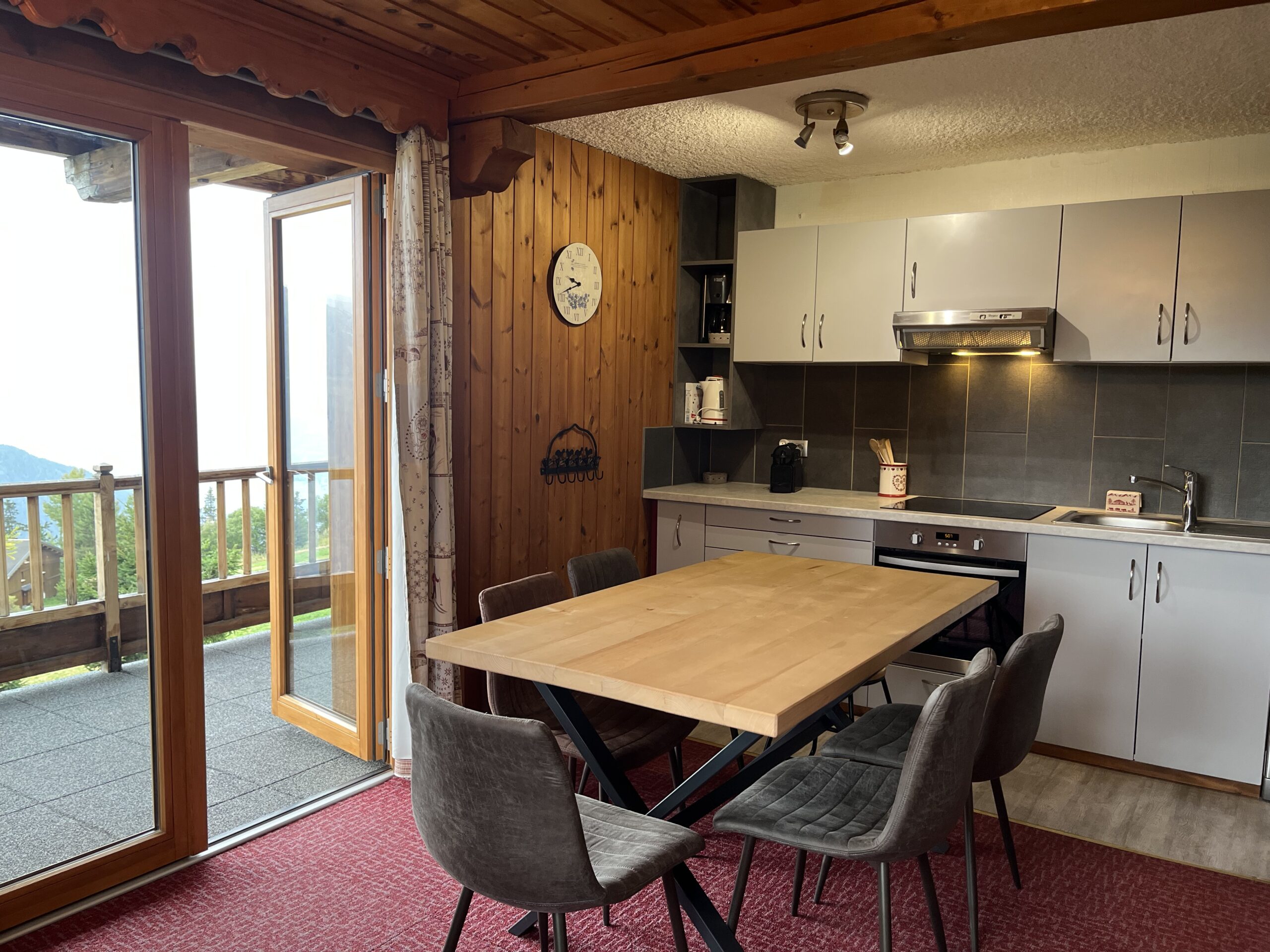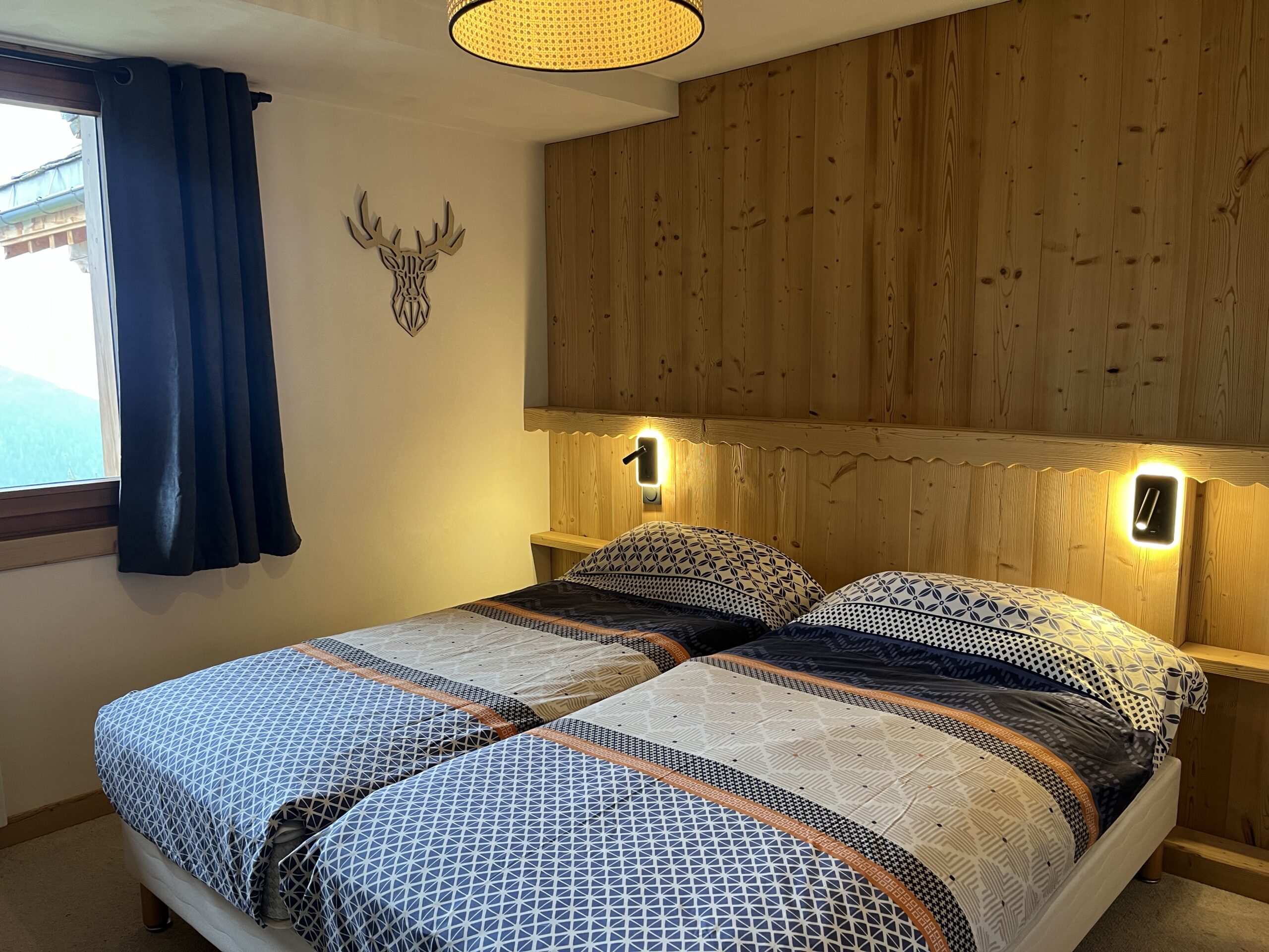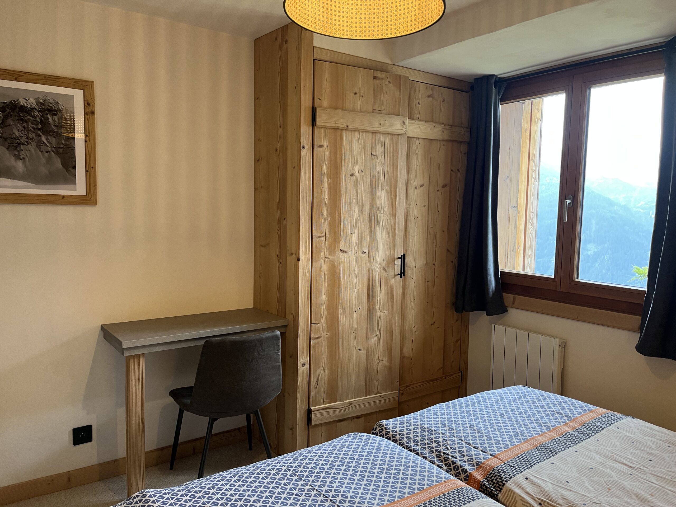 Situé au 1er étage du Chalet Les Charmettes, sur le même palier que l’appartement « Marguerites », cet appartement bénéficie d’un grand balcon de 10m² exposé plein sud afin de profiter au maximum de la vue sur le Mont Pourri et sur la vallée de Tarentaise.